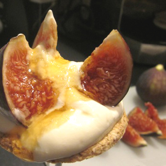 Le gallette d’avena sono state scelte perché l’avena è un cereale dal sapore leggermente dolce che non stride con gli altri elementi. Il miele era un millefiori portoghese dal sapore fruttato-cotto, carico, che riesce a farsi sentire tra gli altri sapori. Dunque abbiamo un intreccio di consistenze diverse: il croccante leggero della galletta (meglio se leggermente scaldata) ancora più attenuato dai liquidi dello yogurt e del miele, la densità avvolgente dello yogurt e quella più pronunciata del miele, la fresca granulosità del fico; è un intreccio di sapori in cui si armonizzano il dolce-fruttato all’acidulo e al leggermente salato della galletta..
